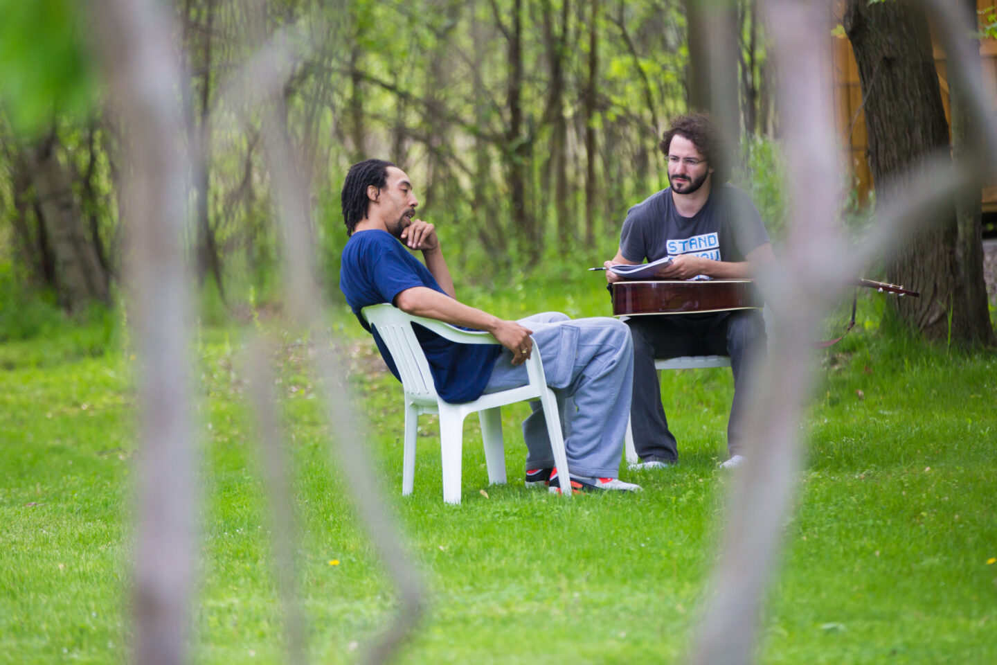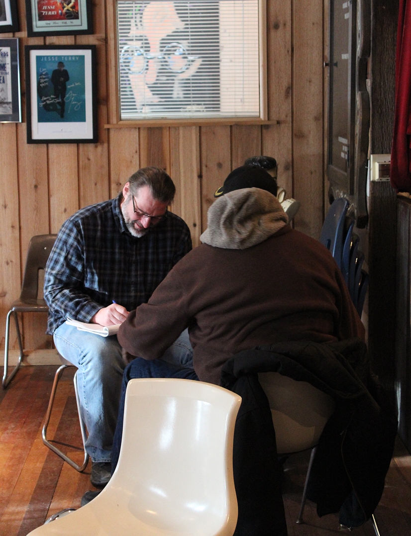 At orientation, Veterans gather to pair up with a songwriter. The pairs split off, and spend the rest of the day reflecting on their service with their songwriter, one-on-one. This is private and moves at the pace and direction each Veteran chooses.